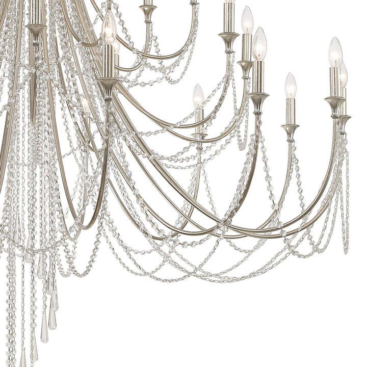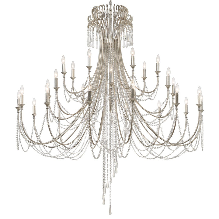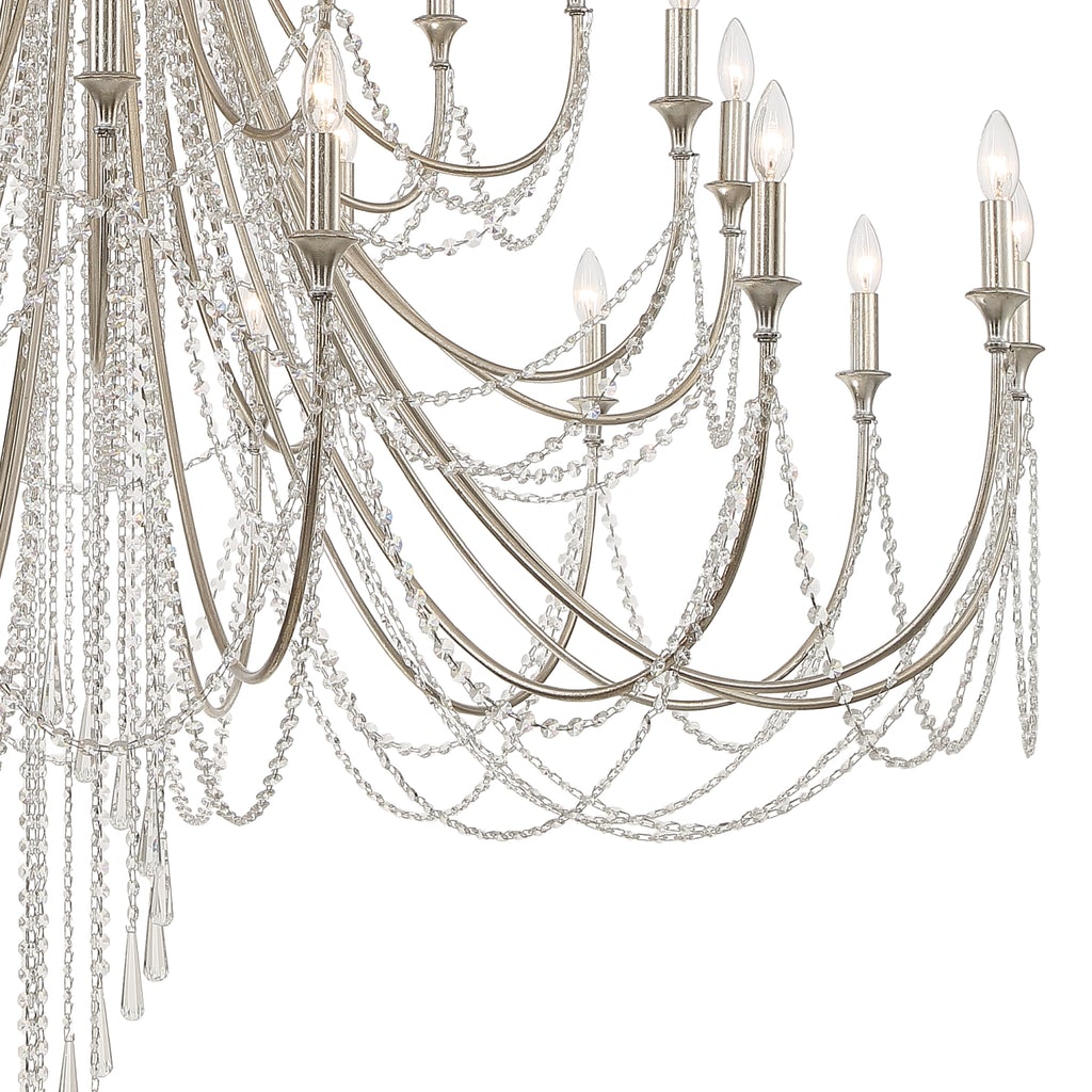 This dazzling fixture transforms any room with its traditional elegance and refined charm. The Antique Silver metal finish, featuring mid-tone gray with lavender and blue undertones, adds a layer of sophisticated intensity. Experience the perfect blend of timeless beauty and modern flair with this exquisite chandelier.