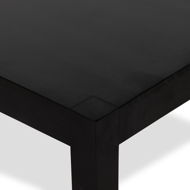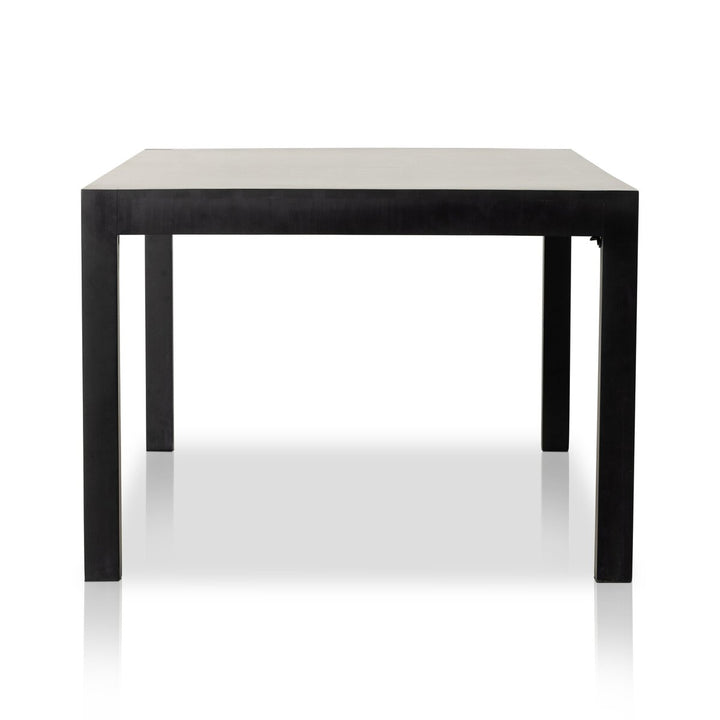 Beautifully simple in spirit. Black-washed solid poplar forms a clean, Parsons-style dining table with dovetail joinery, for a fresh update to Shaker-inspired styling.