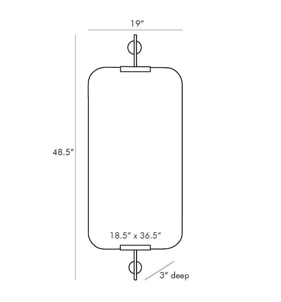 Hovering ever-so-slightly against the wall, this brilliant mirror performs depth-defying feats in a space. Two antique brass brackets hold a plain glass mirror, which has rounded edges for a softer look. Can be hung vertically or horizontally depending on the wall space. Hangs on two security cleat attachments.