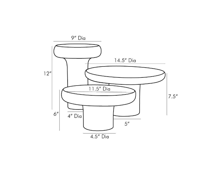 - Overall Medium H: 7.5 in x Dia: 14.5 in