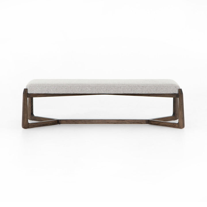 Ideal in an entryway, dining area or at the foot of the bed, an airy, cross-base beechwood frame supports textural bench-style seating, upholstered in a performance-grade fabric exclusive to Four Hands.