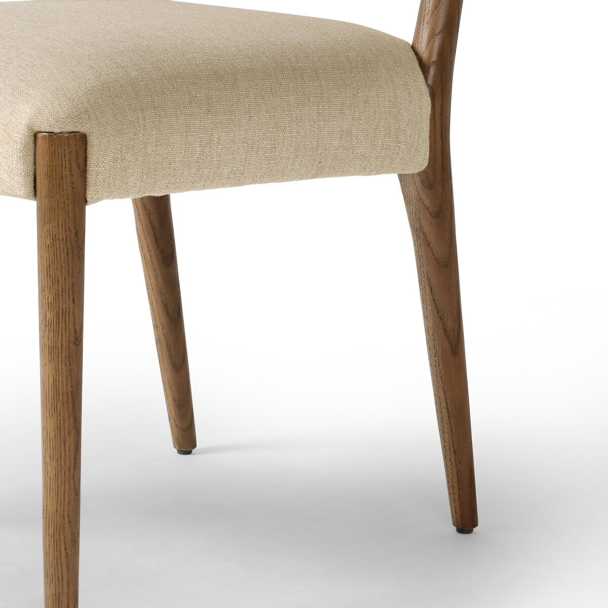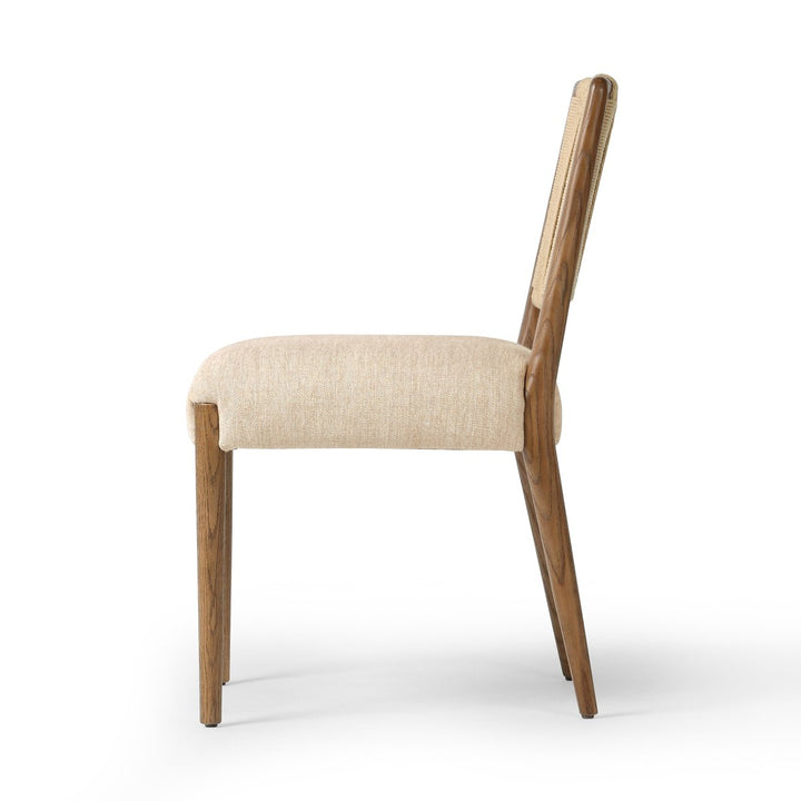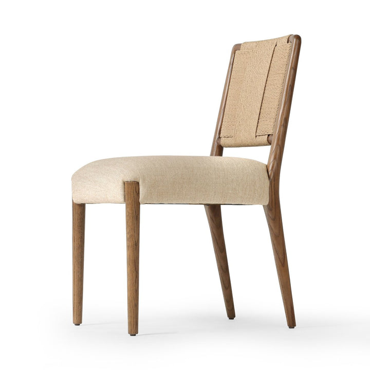 Mixed materials elevate the everyday dining chair. Alternating weave patterns on the seat's back add texture and visual interest, while a thick cushioned seat upholstered in high-performance fabric ensures a comfortable sit. Performance fabrics are specially created to withstand spills, stains, high traffic and wear, ensuring long-term comfort and unmatched durability.