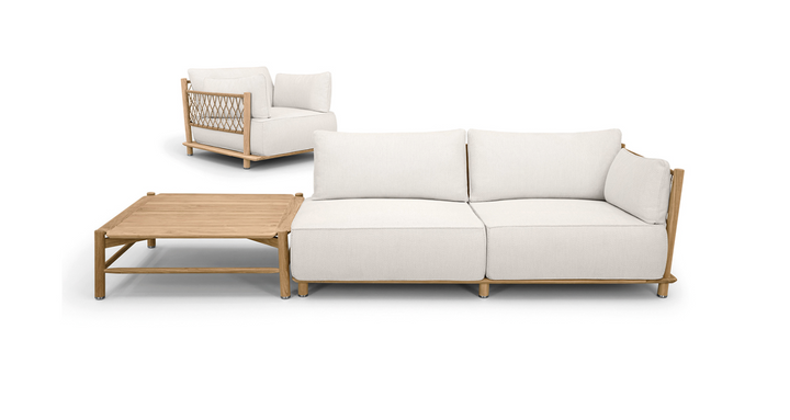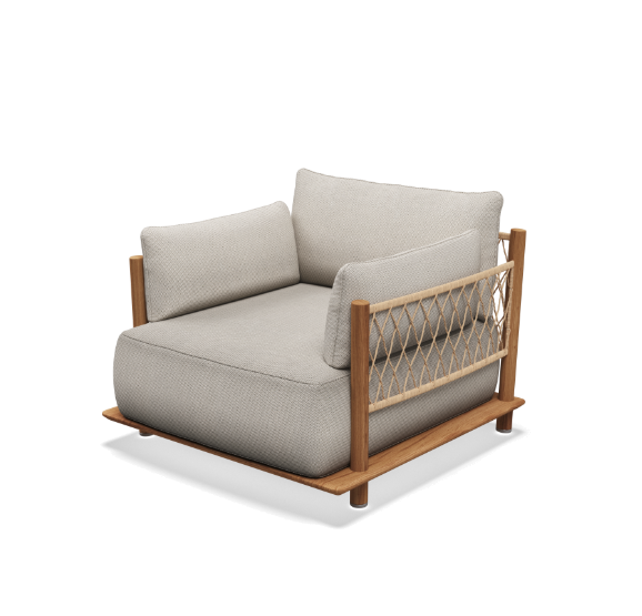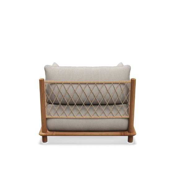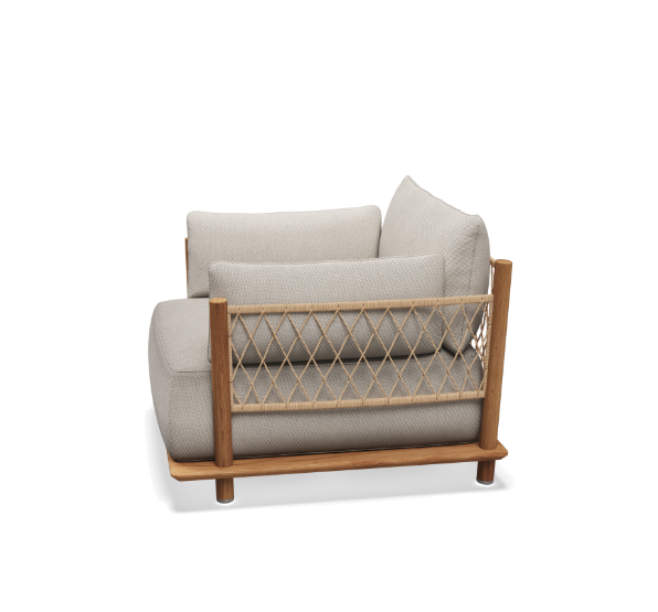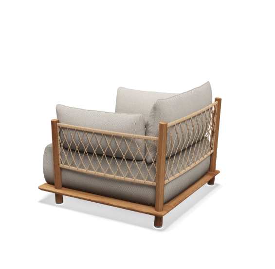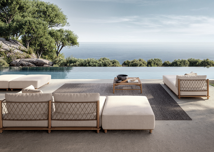 Crafted from natural, weather-resilient materials and finished with high-performance outdoor cushions, this piece is designed to withstand the elements without compromising on feel. The cushions are not only durable — they’re indulgently plush, inviting hours of relaxation under open skies.